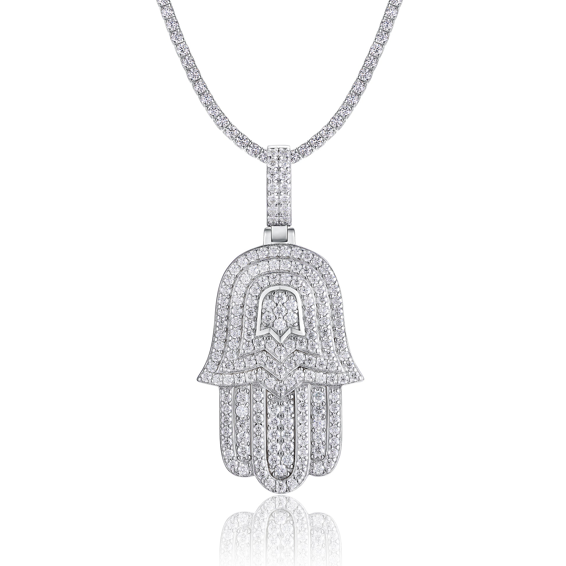 Luxury Crystal Hamsa Hand Necklace | Silver Evil Eye Protection Pendant for Women & Men